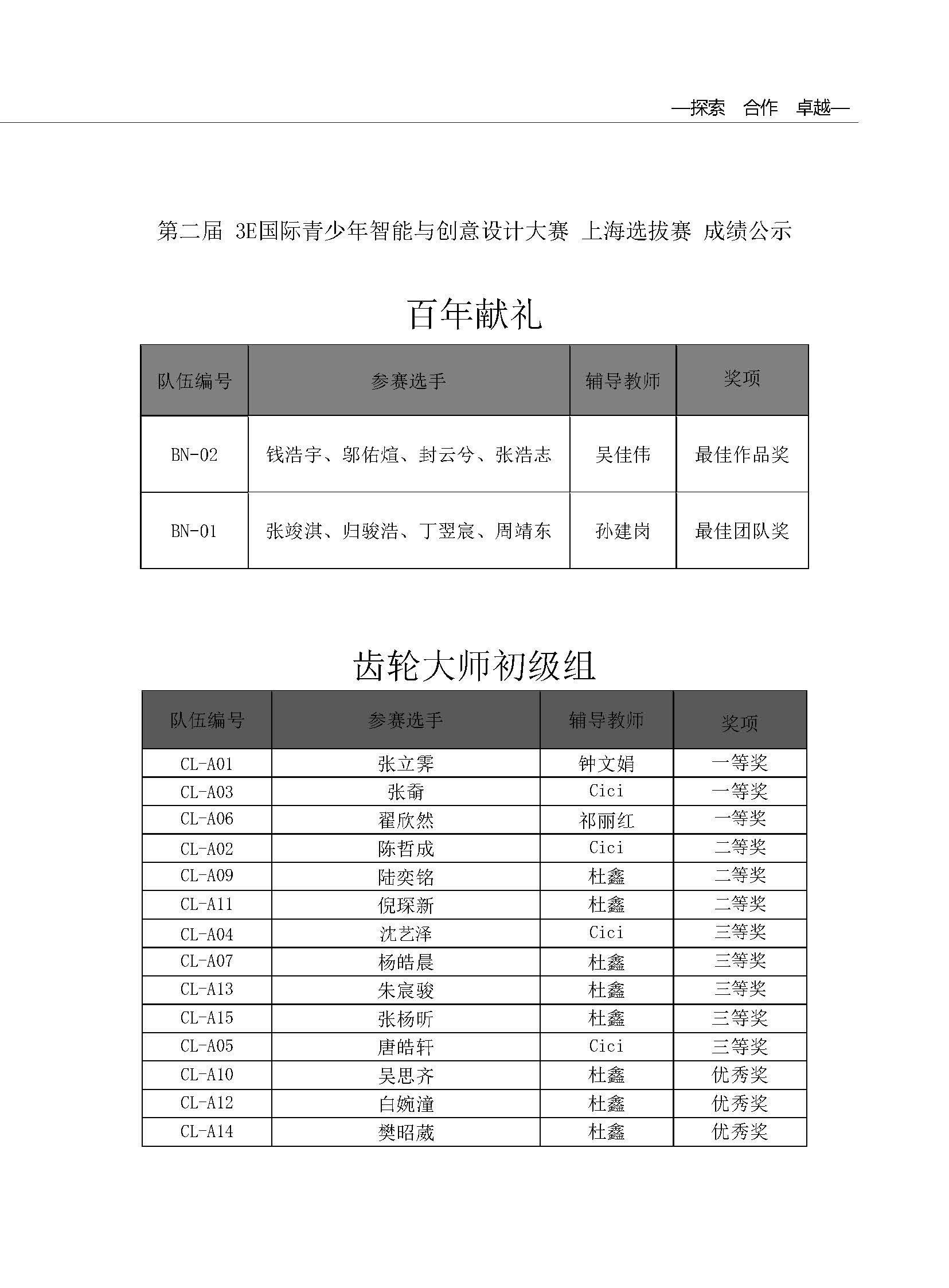第二届 3E国际青少年智能与创意设计大赛 上海选拔赛 成绩公示